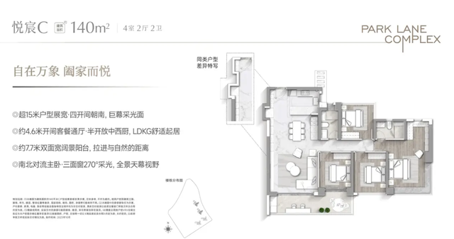 “华润置地长隆万博悦府(悦辰F)140㎡”和“华润置地长隆万博悦府(悦辰C)140㎡”均为四房两卫户型,其“全明格局,采光充足”和“南北通透,户型方正”的特点,进一步提升了居住的舒适度。“南北通透”是南方地区住宅设计中尤为推崇的,它能有效利用自然风,实现空气对流,保持室内空气清新,并在视觉上带来更为开阔的感受。140㎡的面积,为四房设计提供了更充裕的空间,使得每个卧室都更为宽敞,公共区域也更为舒适,满足了改善型居住的需求。