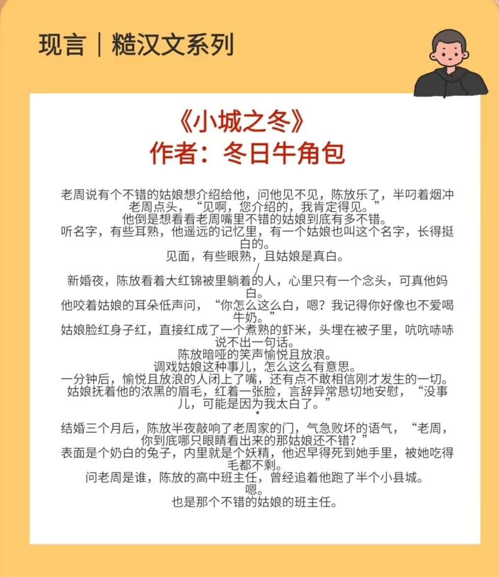 四本高质量糙汉文,强推《小城之冬》,又甜又撩