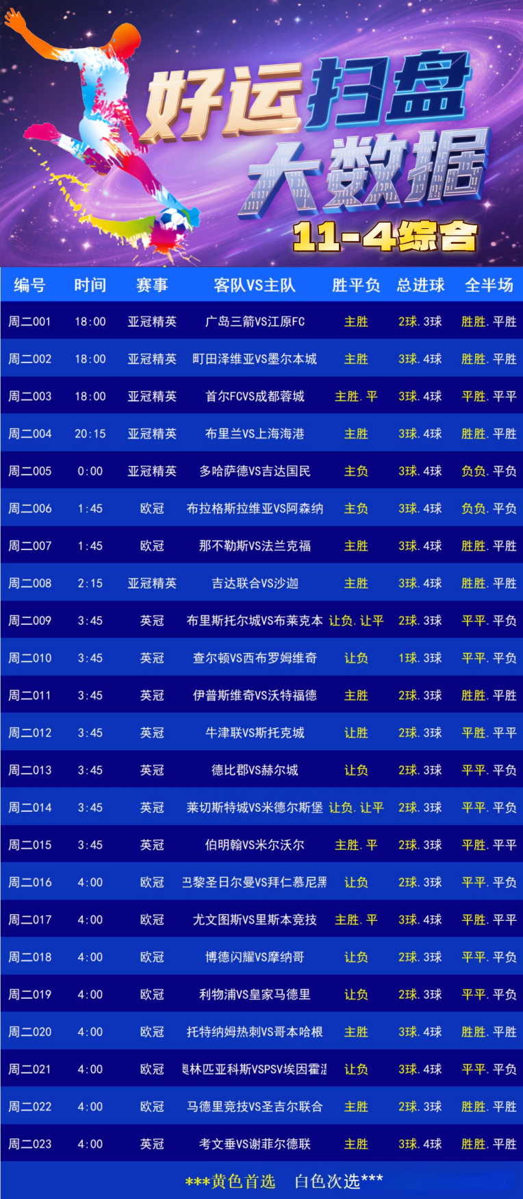 今日23场足球比赛,篮球今日5场赛事,祝我们好运!喜欢元宝足球计划的可以给咱们的文章点点赞!点点推荐!分享给身边的朋友!就是对咱最大的支持!