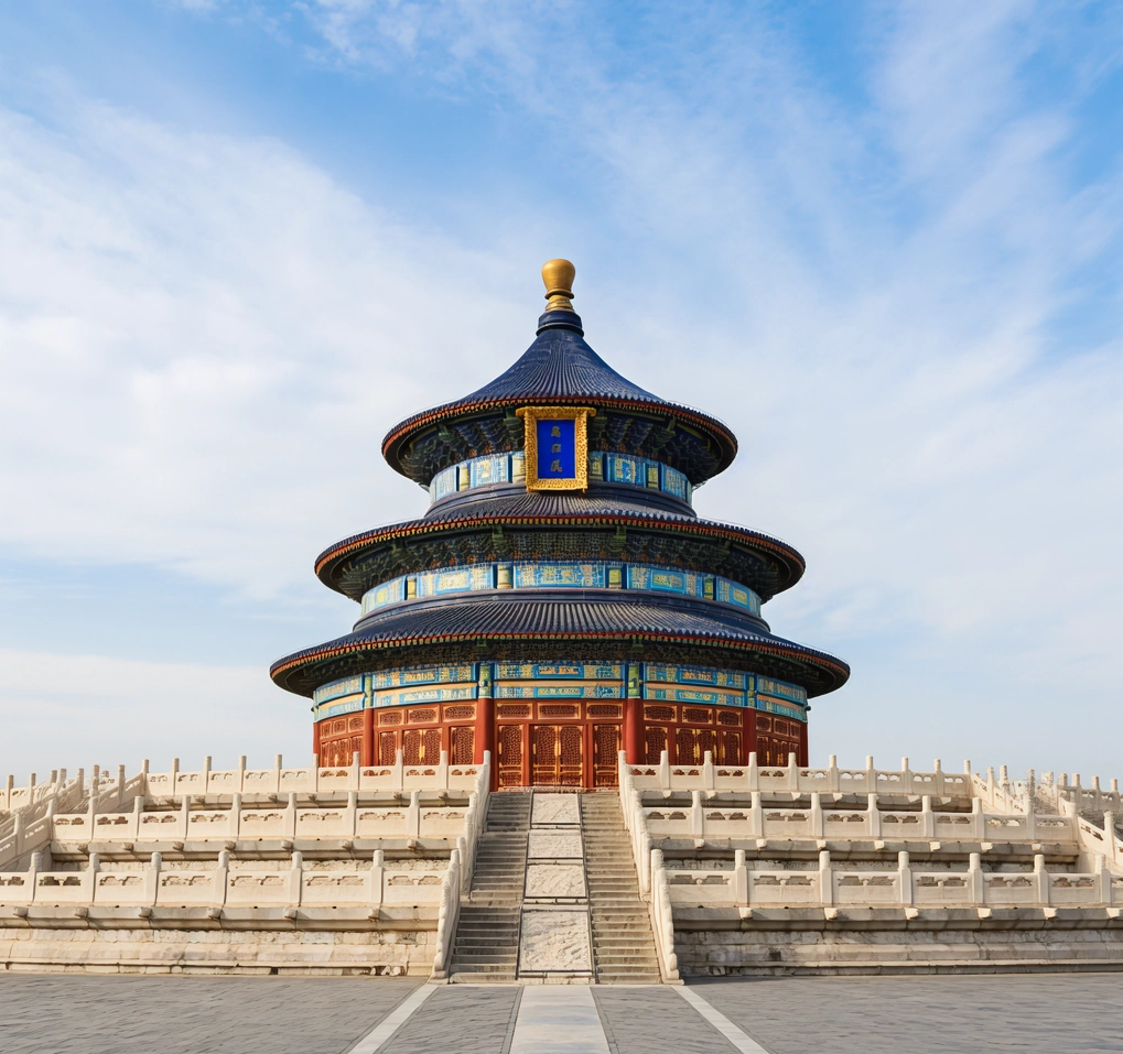北京天坛,原名“天地坛”,是明清两代皇帝祭天、祈谷和祈雨的场所,位于北京市东城区永定门大街东侧。始建于明永乐十八年(1420年),是中国现存最大的古代祭祀性建筑群。天坛以其严谨的建筑布局、独特的建筑结构和华丽的装饰而闻名,具有较高的历史价值、科学价值和艺术价值。主要建筑包括祈年殿、圜丘坛、斋宫等,通过丹陛桥相连,整体布局体现了“天人合一”的哲学思想。