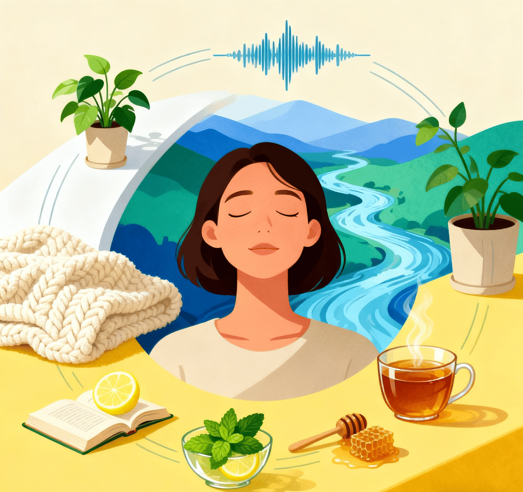 说出5个看到的物体 → 4种听到的声音 → 3种身体触感 → 2种闻到气味 → 1种能尝到的味道