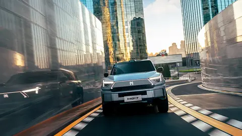 作为一款硬派SUV,M817 Max+采用了非承载式车身,也就是有大梁的设计,保证了更好的通过性。同时,M817 Max+采用空气悬架系统和CDC连续可变阻尼减震器,车身上下调节范围为15厘米,底盘升起后最大离地间隙达到333毫米,车型通过性更好;CDC连续可变阻尼减震器与空气悬架的配合,不但车辆操控性能更好,而且可以过滤掉更多震动,乘坐更为舒适。