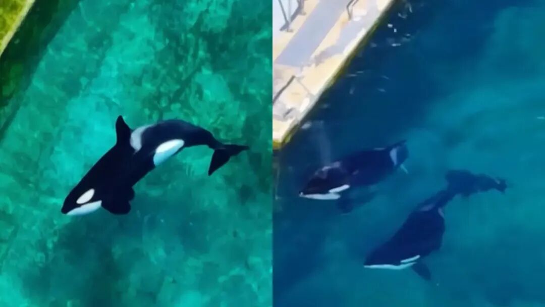 视频里,两只生活在法国一处废弃海洋公园内的虎鲸死气沉沉,摄影师一度以为它俩已经断气。