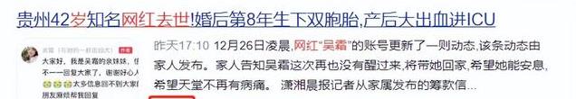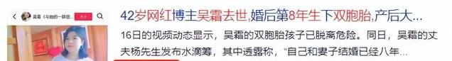 41岁网红吴霜去世,结婚8年生双胞胎竟大出血,生前发文一语成谶