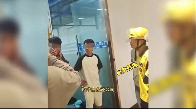 当骑手隔着玻璃指责对方 “吃白食” 时,办公室内员工开始探出头拍照,一名穿白色 T 恤的男性员工猛地拉开玻璃门,叫嚣 “滚远点!别耽误做生意”。