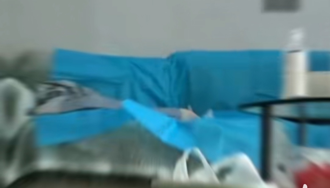 画面显示二人在沙发上举止亲密,视频中出现的印有医院标识的蓝色无菌垫,让每个看到的人都有点颠覆三观。也就是说这个场地是在医院。