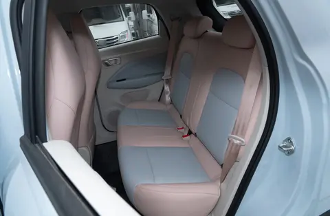 怀挡设计巧 妙地节省了中控台下方空间,方便放置妻子的包包和孩子的零食袋,换挡时双手无 需离开方向盘,一定程度上提升了安全性。内饰新增的海盐蓝配色清新宜人,皮质与织物搭配的材质触感舒适,且易于清洁。全车18个储物点设计贴心周到,能满足多样化的收纳需求。不过,前排没有中央扶手,长时间驾驶时右手会有些疲惫,但考虑到其价格因素,对于日常短途代步来说,影响不算大。