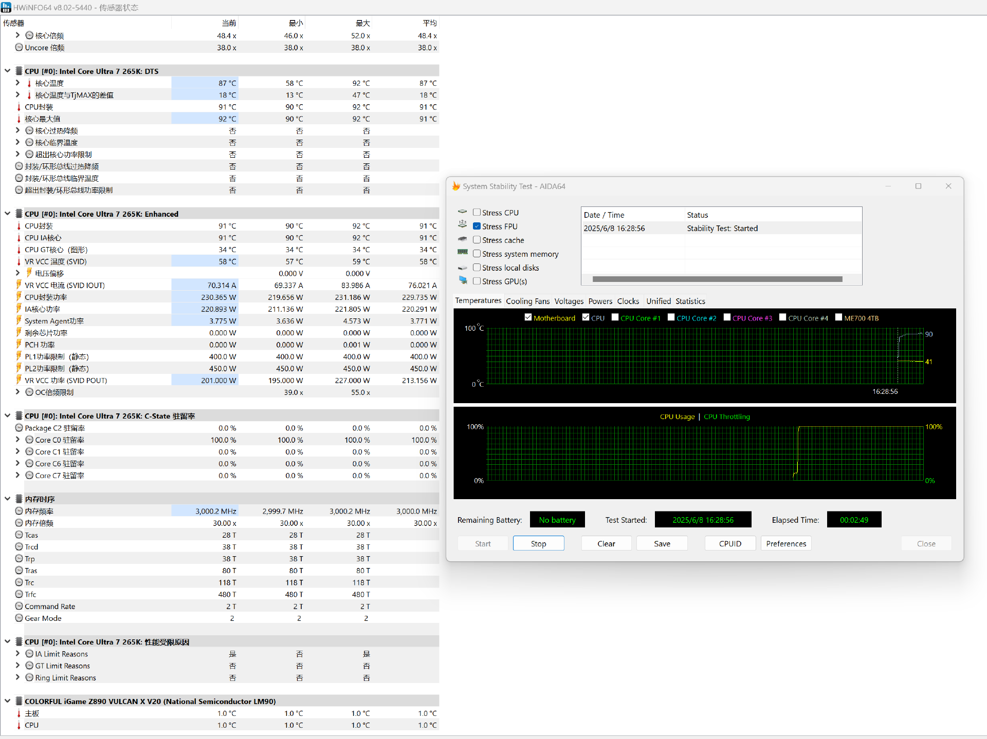 ▼功耗测试,室温30°,机箱内环境:单烤FPU基准测试,烤机3Mins,CPU封装温度为90°左右,CPU封装功耗为230W左右;