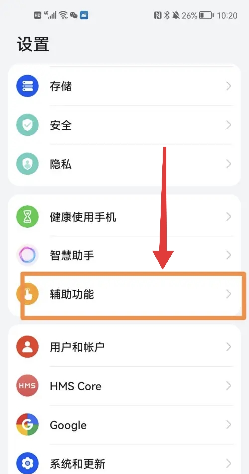 首先打开手机主页面,找到点击【辅助功能】。