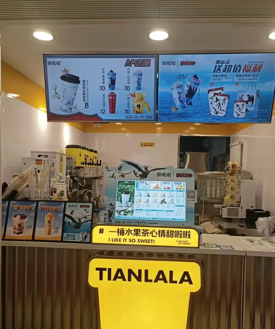 同时甜啦啦在品牌建设上也下了重功夫,通过参与各类行业大奖评选并斩获了各种佳绩,如“2025中国餐饮/新茶饮出海品牌TOP40”等荣誉,甜啦啦显著提升了品牌的知名度和影响力。而且甜啦啦还通过与热门IP的联名合作,如驯龙高手和小黄人等推出创意饮品和周边产品,成功吸引了年轻消费群体的注意,增强了品牌的时尚感和亲和力。