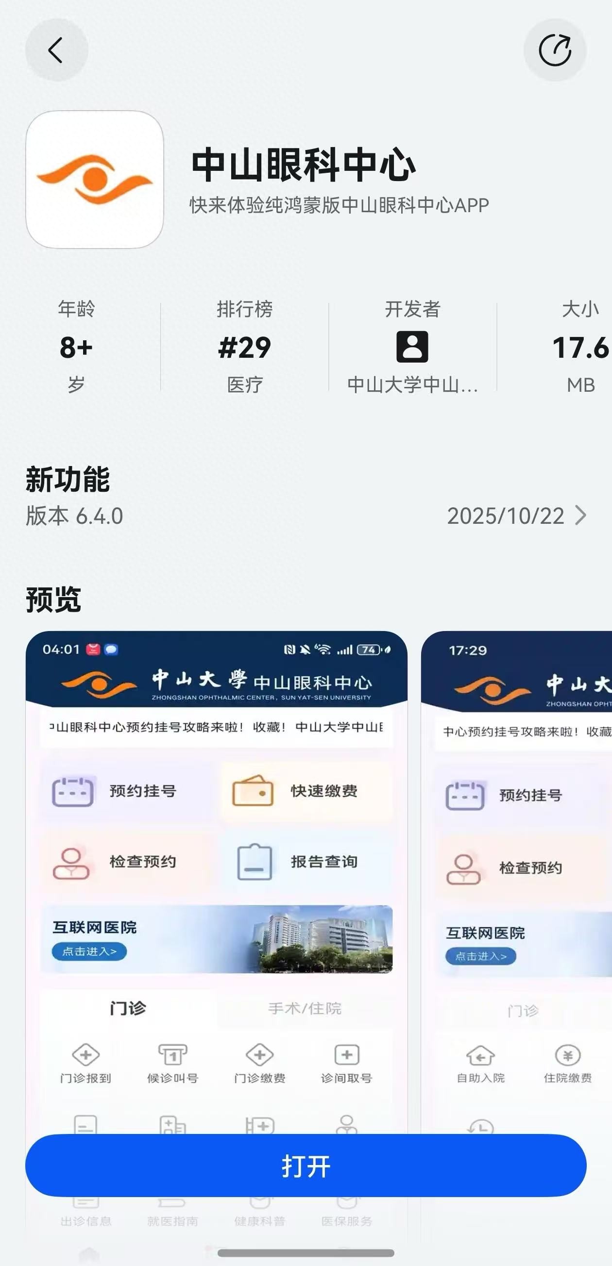 目前,鸿蒙版中山眼科中心已构建起完善的核心功能模块,覆盖门诊、手术/住院、消息中心及个人中心、互联网医院等板块,为鸿蒙用户提供预约挂号、快速缴费、检查预约、报告查询、记录查询及自主出入院等一站式移动线上服务,带来更为流畅、便捷的线上就诊体验。