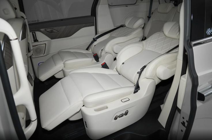 配置上,新车提供木质纹理副仪表台饰板、50W手机无线充电面板、26英寸SR-HUD模拟现实抬头显示、流媒体内后视镜、12.5升车载冷暖箱(双开口设计,支持离车保温)、二三排遮阳帘、17.3英寸3K后排娱乐屏、前排Nappa座椅(支持通风、加热、10点按摩)等高阶配置,体验上甚至不逊于同级别高配车型。而与高山8之间的核心配置差异也体现在零重力座椅变为选配,标配后排休闲座椅和活动扶手,并取消了副驾驶座椅按摩、第三排座椅电动调节,整体配置优化向前排座舱倾斜。