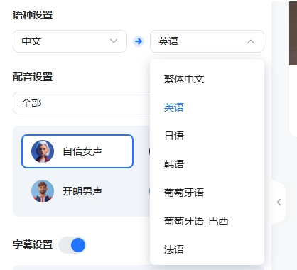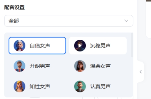 自定义配音:内置多个 AI合成音库,可根据不同场景随意切换,找到最适合你的声音;