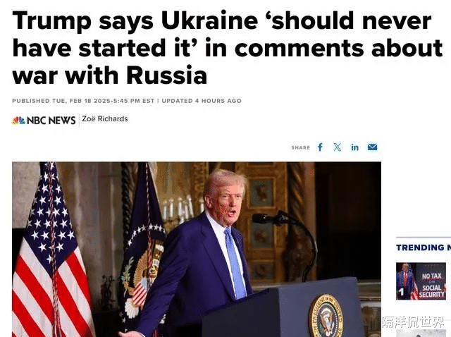 其实,这不是他第一次这么说。在2024年10月18日,《新西兰先驱报》报道称:“唐纳德·特朗普指责乌克兰总统弗拉基米尔·泽连斯基帮助发动了该国与俄罗斯的战争。这一评论进一步表明,如果特朗普赢得美国大选,他可能会从根本上改变美国对乌克兰的政策。这位共和党前总统在竞选过程中经常批评泽连斯基,一再称他为‘地球上最伟大的推销员’,因为他自 2022 年战争爆发以来筹集并接受了数十亿美元的美国军事援助。特朗普还抨击乌克兰领导人未能与莫斯科寻求和平,并暗示乌克兰可能不得不将其部分土地割让给俄罗斯以达成和平协议,基辅认为这一让步是不可接受的。特朗普周四在 PBD 播客上与帕特里克·贝特-大卫的评论比他之前的批评更进一步。”
