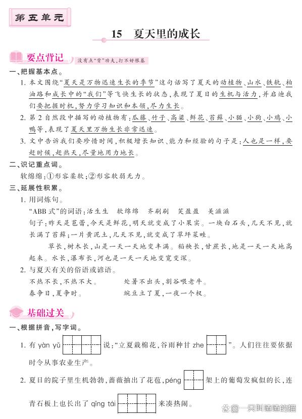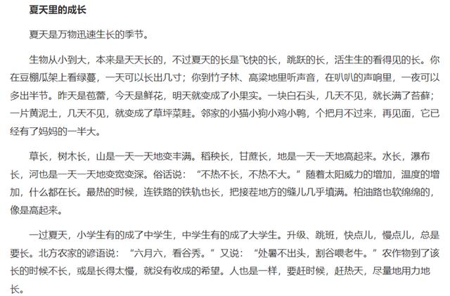 《夏天里的成长》是一篇通过描写夏天里万物都在成长的自然现象,说明人要把握时间,“尽量地用力地长”的哲理散文。