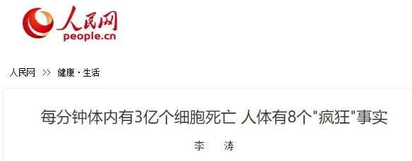 人体由约40万亿个细胞组成,这些细胞的健康决定了人体的健康。人体每天约有3亿个细胞死亡,只有每天产生的新细胞等于死亡的细胞,人体才能保持健康。