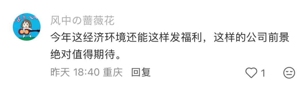 有网友表示,今年这经济环境还能这样发福利,非常难得——
