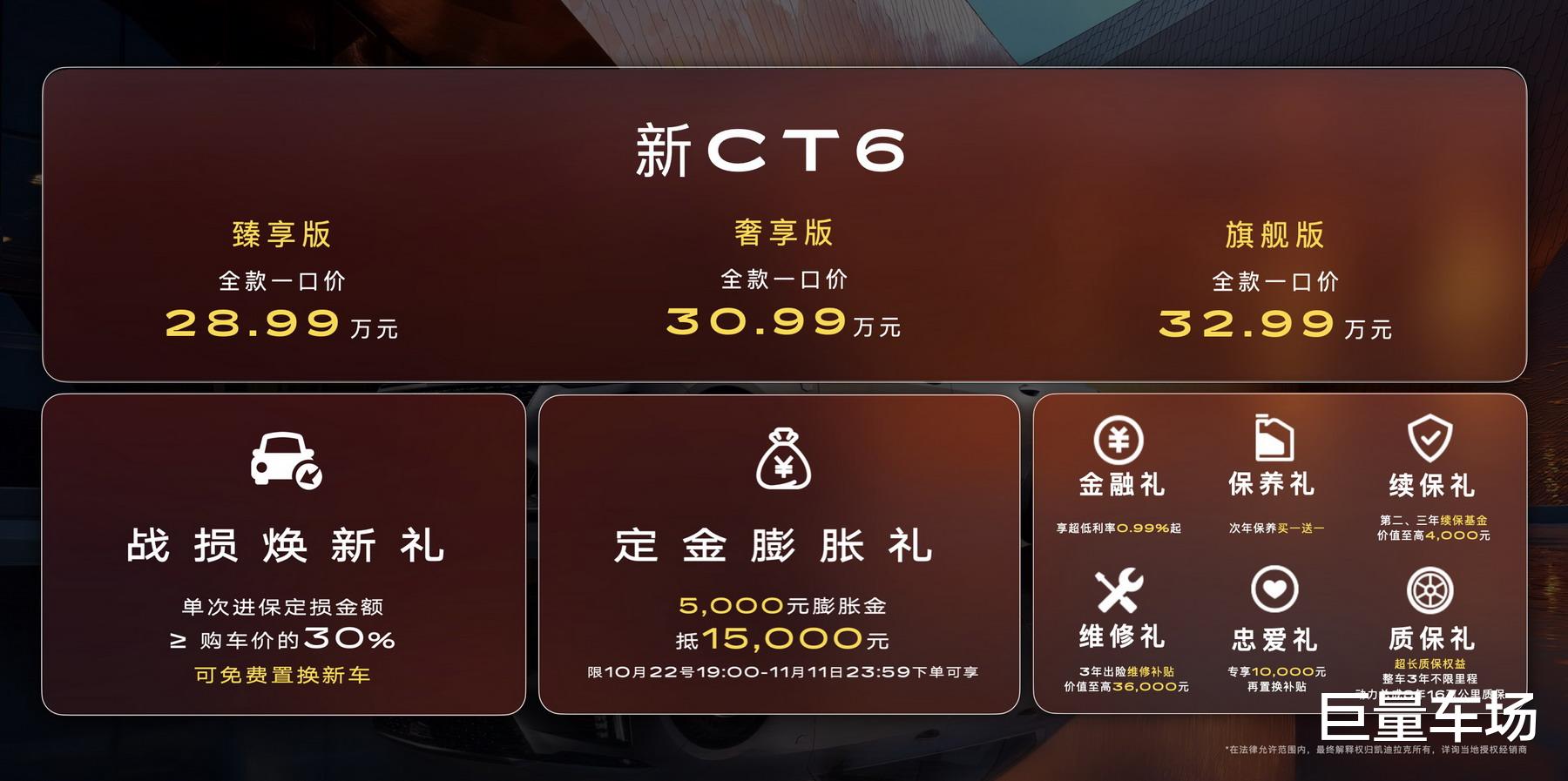 2025年10月22日,凯迪拉克以创新虚拟现实技术发布百万级磁浮底盘,搭载该底盘的全尺寸旗舰轿车凯迪拉克新CT6也同步正式上市。新CT6优化配置结构,精简为臻享、奢享、旗舰三款车型,配置全面升级,全款一口价28.99万元起。同时,新CT6重磅推出备受用户好评的“战损焕新礼”——单次车损超过购车价三成可置换等价新车,目前已有超过60位凯迪拉克车主享受该权益。