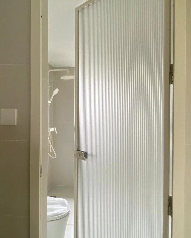 尤其是灰油砂玻璃,即便是里面的人靠近门,也只能看到一个模糊的黑影,轮廓不会太明显,实用性和私密性都兼顾到了。
