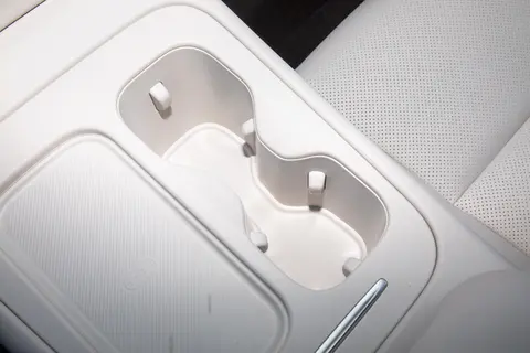 后排的 15.6 英寸大屏幕堪称家用神器。长途出行时,给孩子放动画片、连接游戏手柄,画面流畅不卡顿,画质和音效都很出色。孩子在后排有事可做,不吵闹,前排驾驶员也能更专心驾驶。更贴心的是,这款屏幕还能直接调节空调和座椅加热,像家里老人操作起来也毫无压力,不用再麻烦前排帮忙。扶手箱内还隐藏着一个 8.1 升的小冰箱,夏天放进几瓶饮料,上车就能喝到冰爽的饮品;冬天早上把热好的牛奶放进去,到幼儿园门口时依旧是温热的,比带保温杯方便不少。前排配备了两个 50 瓦的无线充电板,夫妻两人的手机能同时充电,半小时就能从 30% 充到 80%。中控台下再也不会被充电线堆满,车内环境更显整洁。虽然内饰用料不是顶级的软包,但摸起来质感不廉价,以这个价位来看,能把实用配置做得如此全面,已经十分难得。