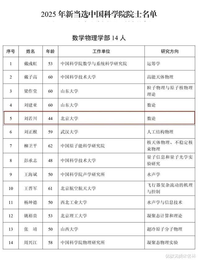 2025年11月,刘若川当选中国科学院院士(数学物理部),再次证明了国家、学术界对他数学能力的高度认可。