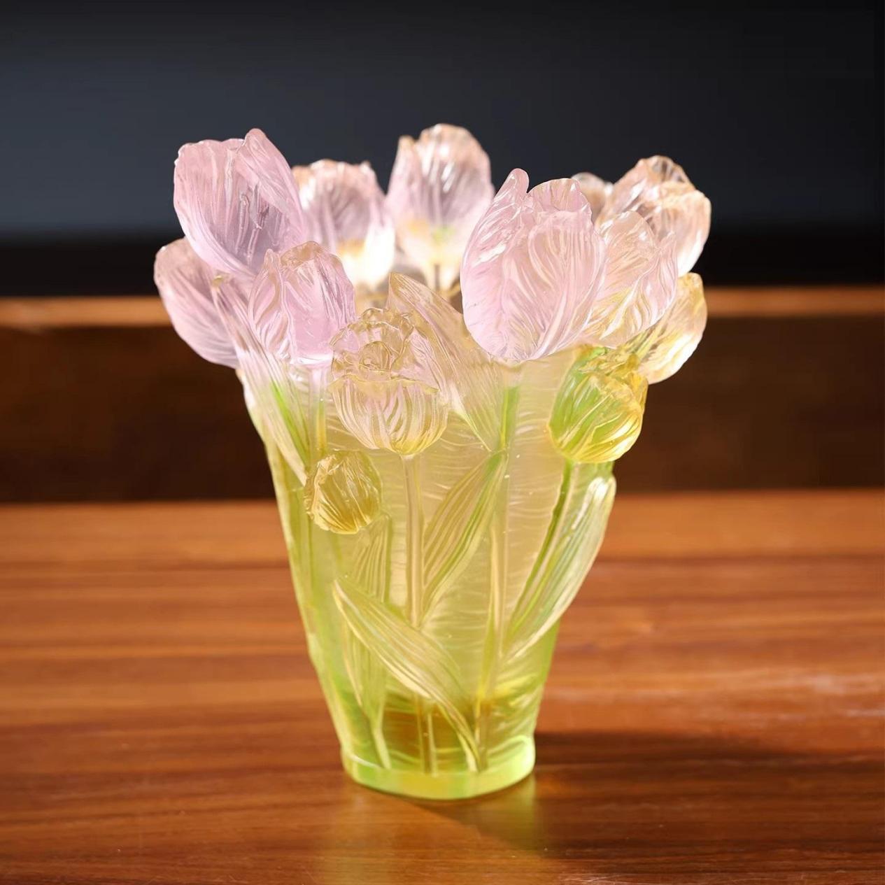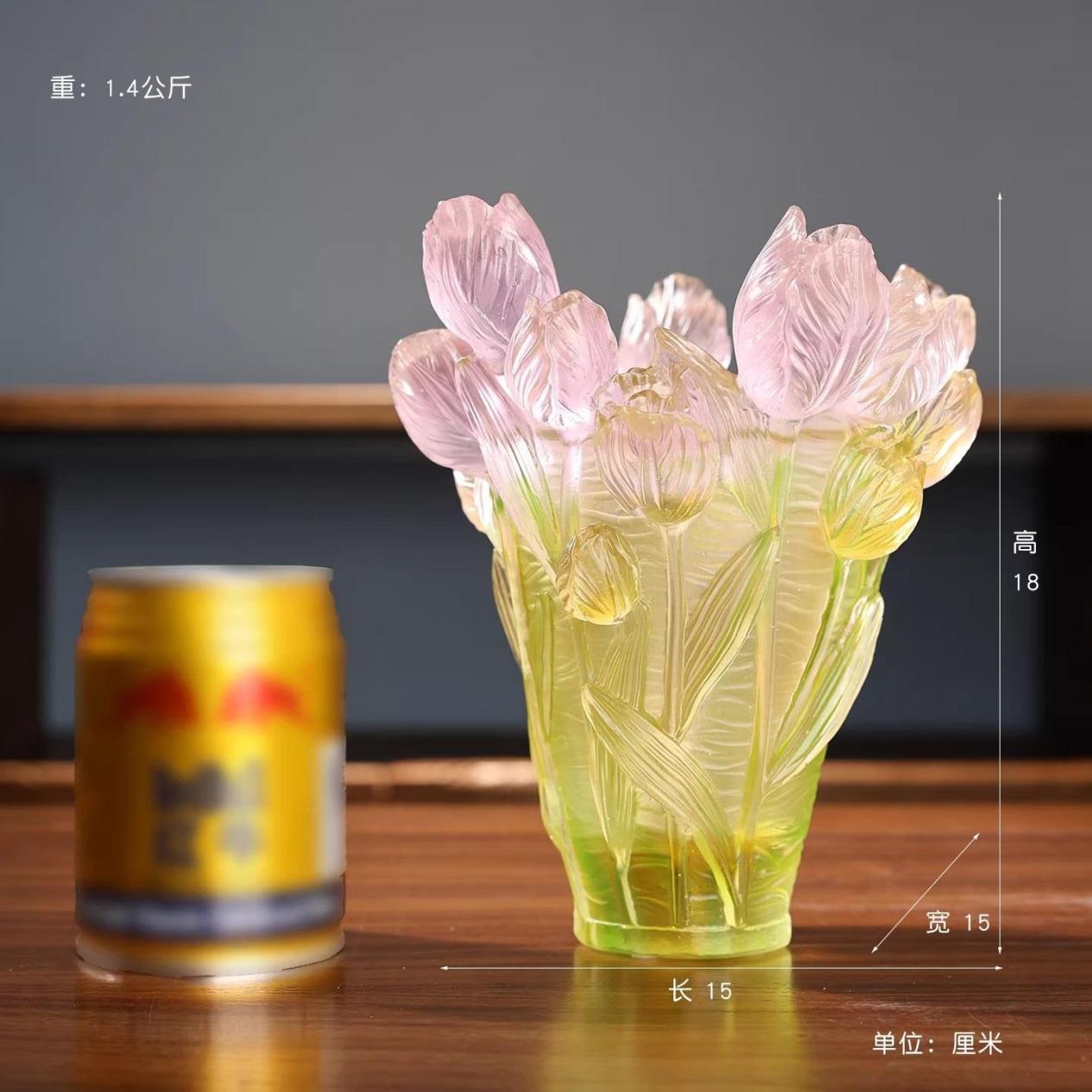 古法琉璃郁金香花瓶,是自然之美的凝练,是古老工艺的当代演绎,更是匠心精神的生动注脚。它的美,跨越时空,连接着历史与当下 。在快节奏的现代生活里,不妨停下匆忙脚步,细细品味这件艺术佳作,感受古法琉璃工艺的独特魅力,珍视传统工艺的传承与发展 。让这只花瓶,成为生活中的诗意点缀,引领我们走进艺术殿堂,聆听艺术的永恒回响 。