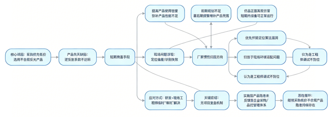 更关键的是,当设备出现定位偏差等问题时,设备厂家的第一反应往往是怀疑定位算法,习惯性依靠研发与现场工程师的经验去“填坑”。这种就事论事的解决思路,导致实施层面暴露的产品隐患,很难通过项目复盘反思,反馈到企业的整体采购管理与品控体系中,最终形成 “治标不治本” 的恶性循环。