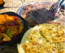 五花肉烤起来蘸着干料吃真的很香!护心肉是腌制过的,口感微甜,包着生菜吃很清爽的一口!
