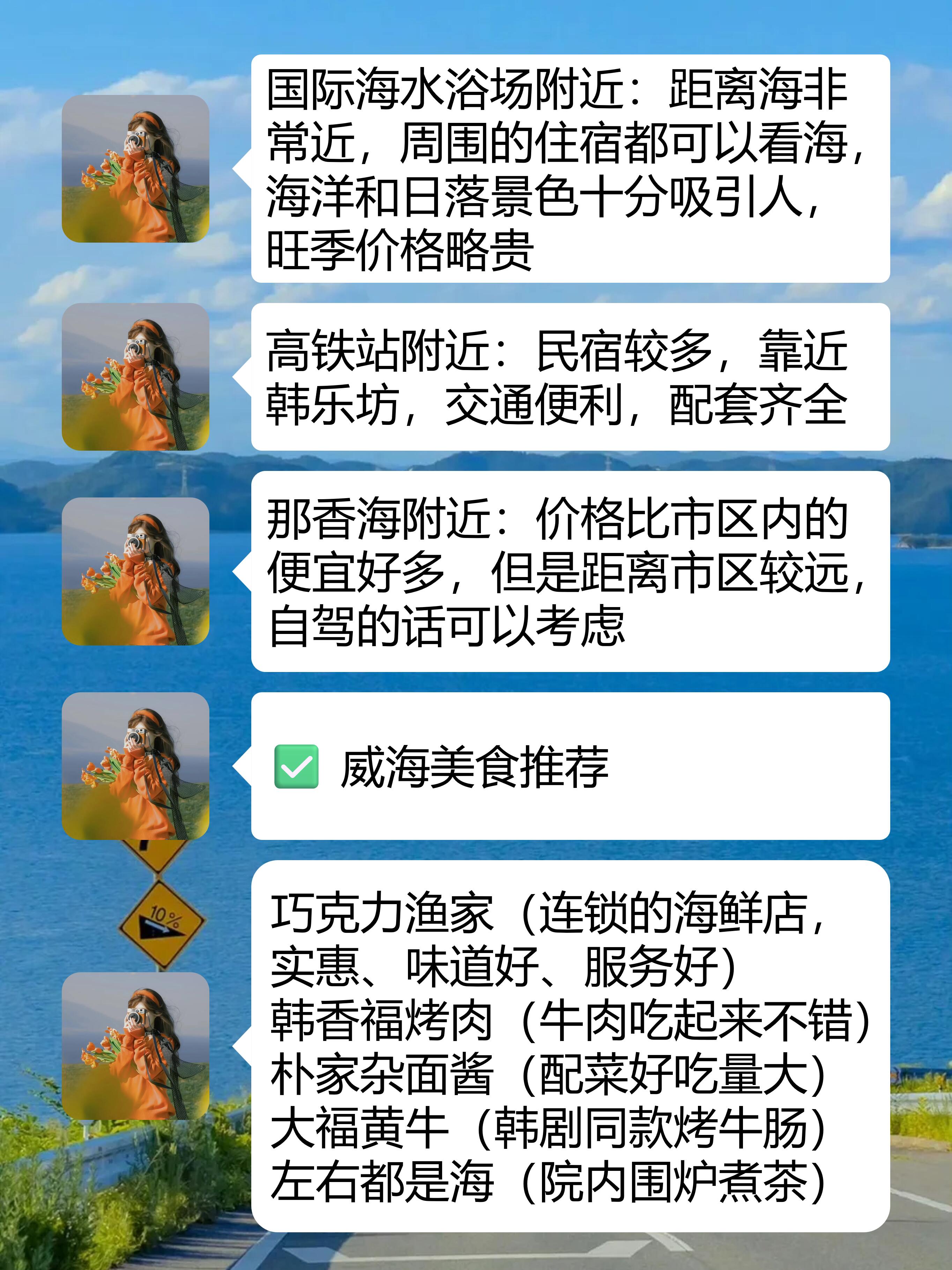 火车🚞:威海站靠近韩乐坊,威海北站(高铁站)靠近国际海水浴场。两个站都很方便