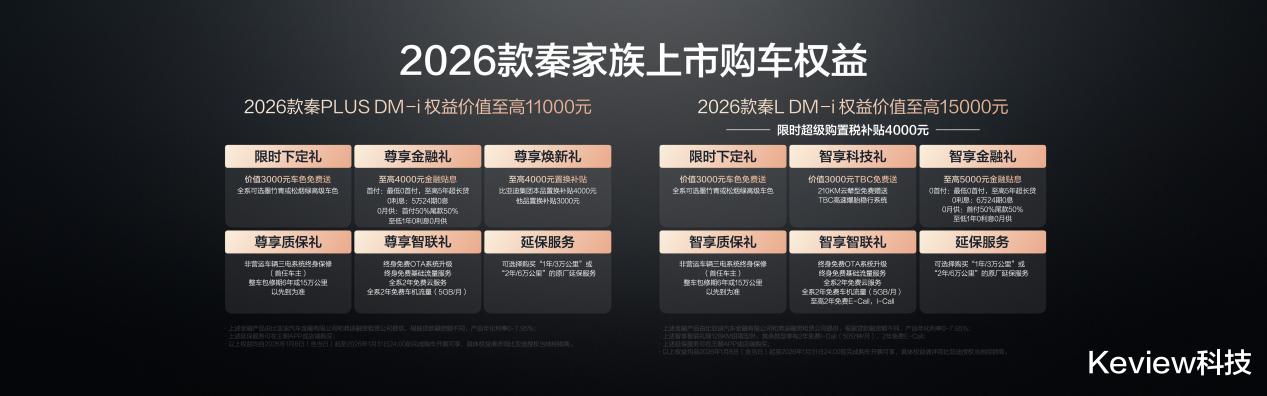 值得一提的是,2026款秦L DM-i 210KM长续航版为追求品质的家庭推出了价值至高15000元的多重权益。1月31日前下单可享受限时超级购置税补贴4000元;购买210KM云辇型还可免费获赠TBC高速爆胎稳行系统,让用户购车更省钱、出行更安全。
