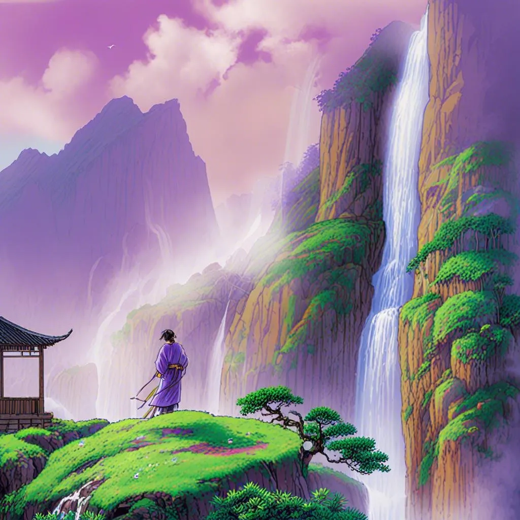 第二天一早便来到庐山脚下,李白站在山脚下,抬头望去,只见一座高耸入云的山峰,峰顶云雾缭绕,仿佛是神仙居住的地方。阳光透过云层,照射在庐山西北一处形状尖圆的山峰之上,如同一座香炉一般,当地人告诉李白,这座山峰就被称为“香炉峰”,由于瀑布飞泻,水气蒸腾而上,在丽日照耀下,仿佛有座顶天立地的香炉冉冉升起了团团紫烟,缥缈而神秘。