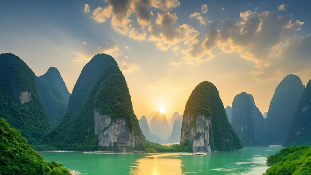 李白游览完庐山,沿楚江东行,继续前往金陵。楚江,这条古老的河流,见证了无数的兴衰更替,如今又迎来了这位诗人的到访。他站在船头,放眼望去,只见天门山如同两扇巨大的天门,从中间断开,让楚江的碧水穿流而过。江水在此处回旋,仿佛在向李白展示它的力量和柔美。两岸的青山,如同两位忠诚的卫士,静静地守护着这片水域。阳光洒在江面上,波光粼粼,仿佛是大自然为李白铺设的一条金色的地毯。自己所乘之船沿着这金色的地毯,缓缓地驶向那未知的未来,不断追求,不断探索。