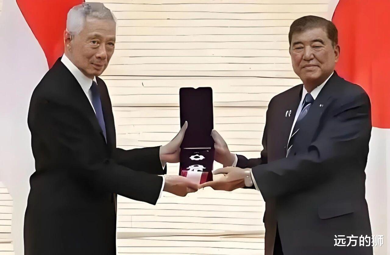 8月25日,在93阅兵之前新加坡国务资政李显龙在东京首相官邸接受了日本首相石破茂代表天皇授予表彰“对国家公共有功劳者中,有引人瞩目的显著功绩内容”者的“旭日大绶章”。