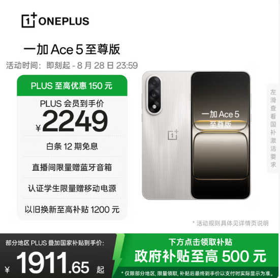 12G+256GB 版本补贴价只要1911元左右,512版本也2336元左右,各类网课 app 和大型游戏随便装。如果预算有限,又想兼顾游戏性能和校园日常实用,这款一加 Ace 5 至尊版是真的很合适。