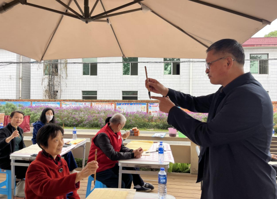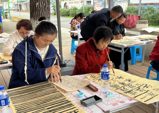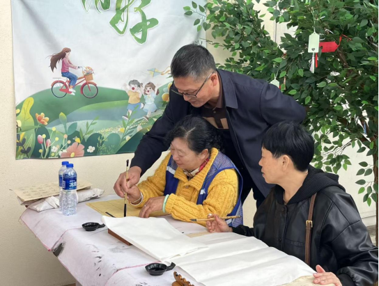 活动现场布置简洁有序,长桌上整齐摆放着笔墨纸砚。在书法基础教学环节,书法老师系统讲解了汉字书法的历史沿革,并现场演示执笔方法、基本笔画等入门技巧,参与者们围坐在一起,认真聆听讲解,仔细观摩老师的示范动作,不时在练习纸上尝试书写。活动现场气氛热烈,墨香与欢声笑语交织在一起,构成了一幅生动的社区文化画卷。