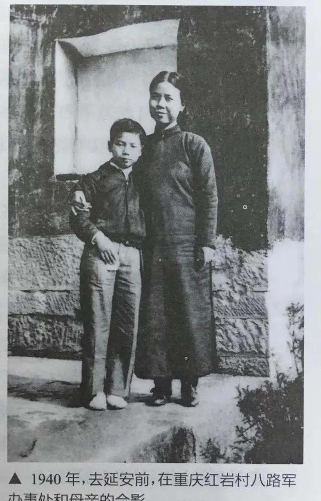 这张照片里的少年其实是前国务院总理李鹏。他在晚年写的回忆录里专门提到过这张照片:"1940年,在重庆红岩村的八路军办事处,我和邓妈妈拍了这张合影,那会儿正准备动身去延安。"