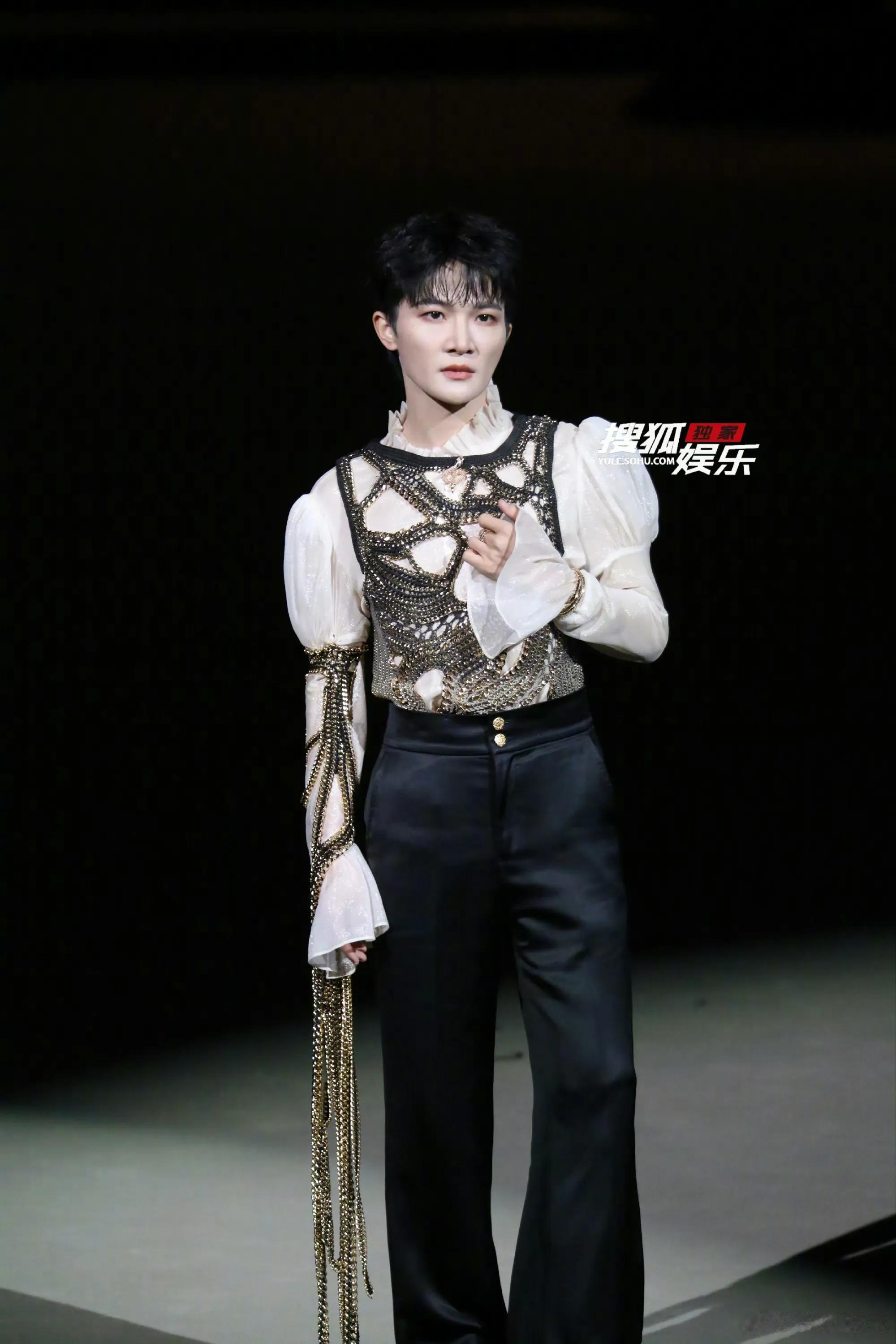 男明星中,周深的造型同样令人忍俊不禁,蕾丝花边内搭配金属镂空外搭,这是宫廷风还是重金属机械风格?属实是看不懂。