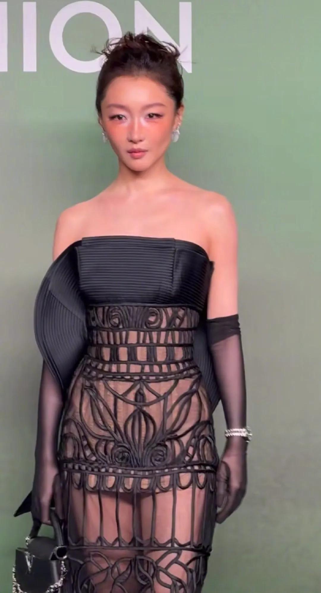 周冬雨一直是红毯上的常败将军,屡战屡败,屡败屡战,尤其热爱性感风,不是漏肚子就是漏肚脐,而这次她选择了漏肩膀,但好像作用不大,尽管是肉色镂空的裙装,却毫无性感可言。