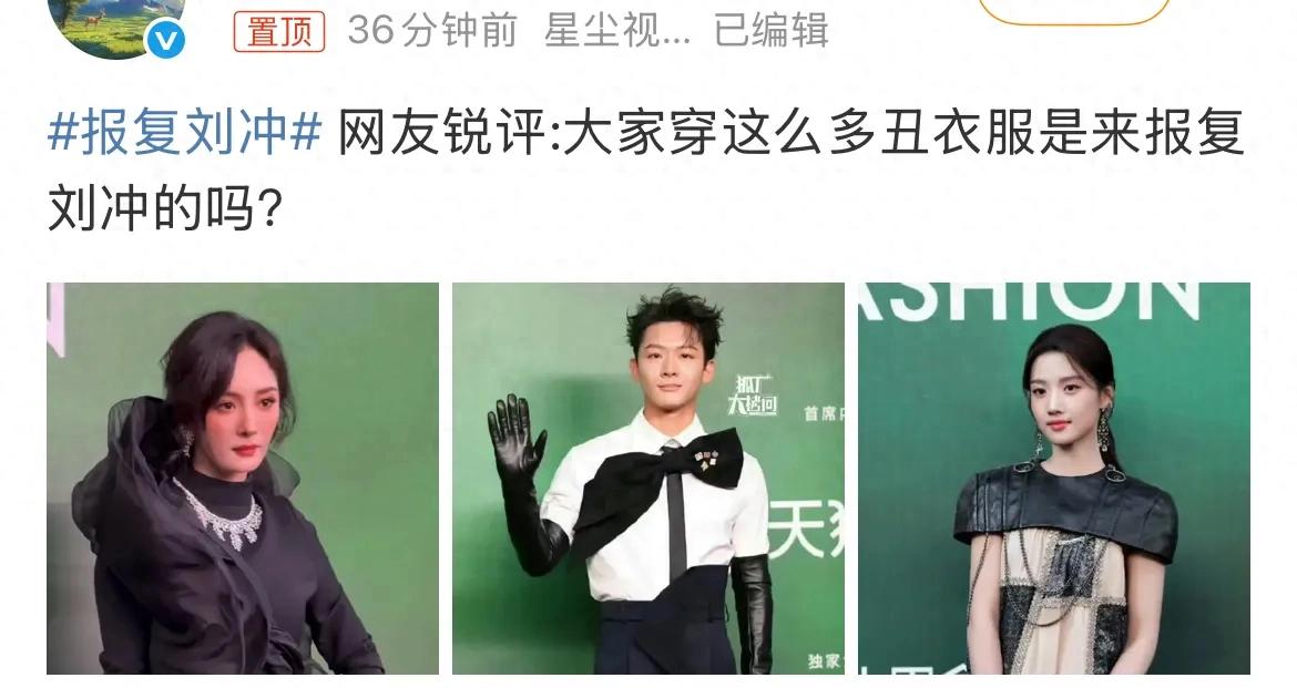 本以为来了的嘉宾会好好打扮一番,结果红毯上的明星造型令人大失所望,不禁怀疑,大家是不是为了气刘冲,把最丑的造型都搬到红毯上来了。