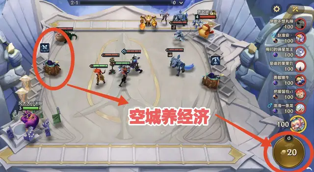 2-1阶段由于没有太好的打工卡,加上拿了安慰剂补经济,选择了空城连败(空城不一定全空)。