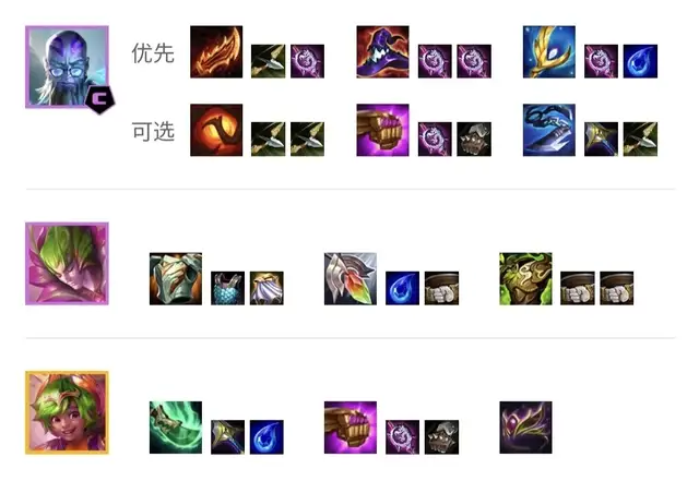 主C瑞兹:羊刀/大天使/法爆/红BUFF,也可以上巨杀/电刀/帽子等,不用青龙刀。瑞兹技能受攻速影响,攻速越快技能球越多,伤害越高,加上学者羁绊,攻速越快,回蓝越快!
