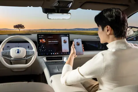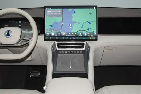 智能座舱的硬件配置很亮眼,搭载了 4nm 制程芯片,功耗不高但算力很强,8 核 CPU、10 核 GPU 加上内置 NPU,不管是运行导航还是玩游戏都很流畅。多屏互联系统很有特色,50 英寸 AR-HUD、13.2 寸仪表屏、17.3 寸中控屏、13.2 寸副驾拓展屏和 17.3 寸后座娱乐屏能实现联动,副驾看剧、后排看动画、驾驶员看导航互不干扰。