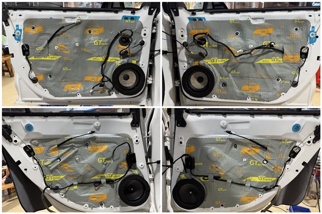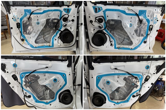 原车门板仅有一层塑料薄膜,隔音效果有限。技师拆除原薄膜后,使用GT隔音材料对四门进行了双层隔音处理,有效抑制振动并提升车门密封性,为喇叭提供更好的工作环境。