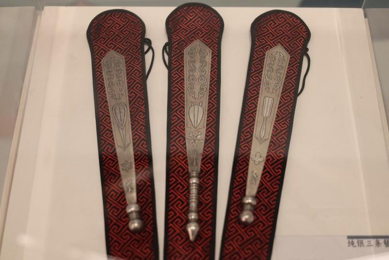 制作三条簪的过程堪比一场精密的舞蹈。江寻千先把银料锻打成长条,用小锤敲出均匀的弧度;接着用刻刀在表面錾刻卷草纹,每刀下去的力度都要精准