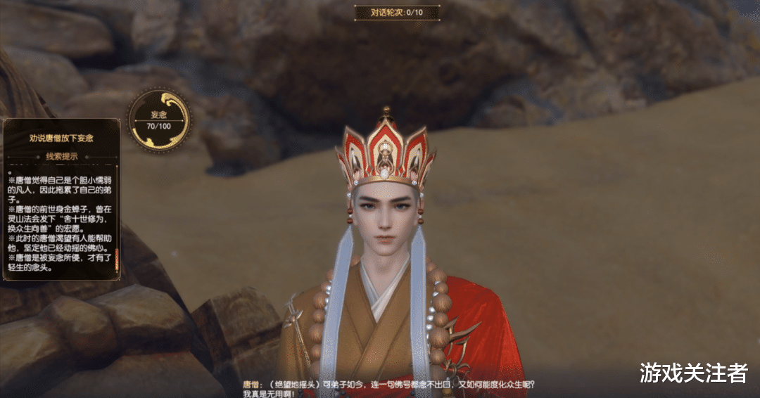 为了解开心结,盲眼老僧给出两条解法:持菩萨念以唤醒大圣自省,或用金刚怒化解愤怒。选择持菩萨念后,主角可以通过“嘴炮话疗”帮助师徒们解开心结。而盲眼老僧的真实身份到底谁?更多细节欢迎大家上线亲自体验!