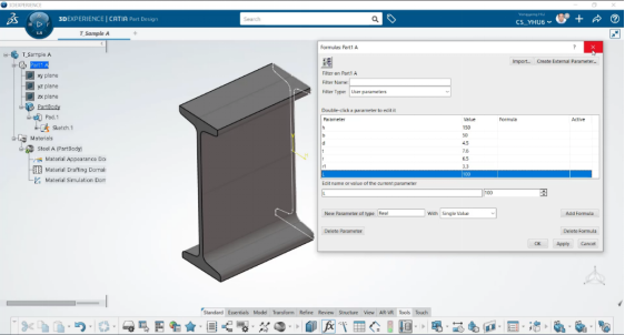在产品设计过程中,结构工程师和系统工程师按照企业产品设计规范、参考企业模型库进行产品设计,MBSE模型与MBD模型将自动建立参数对应关系。上游系统工程师完成系统模型后,下发系统模型中的几何特性参数,自动将系统模型中的参数值传递到CATIA三维模型中,直接驱动三维结构模型进行更新,实现几何特征参数的传递。
