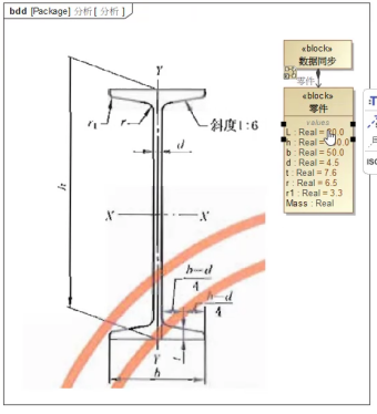 MBSE工程师建立企业统一的系统模型库,同样引用参数库的参数,对系统模型进行定义。引用响应时间、控制误差等系统性能参数,描述系统的性能特性;引用轮廓尺寸、重量、间隙等几何特性参数,描述系统的几何特性。而系统的重量、中心、转动惯量等物理特性参数信息,则需要由MBD模型及生产测量提供。