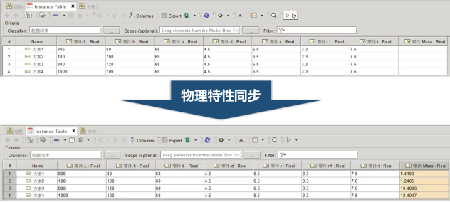 结构工程师综合考虑产品功能、工艺能力、制造水平、维护便捷性等多方面的因素后,完成产品的结构及零件设计,确定产品的材料等属性,CATIA工具自动生成产品的重量、中心、转动惯量等物理特征信息。此时,将这些物理特性信息自动同步更新到系统模型中,更新完善系统模型的物理特性信息,用于产品系统级的重量重心分析、动态性能仿真,在此基础上,也可以实现基于物理特性的多方案权衡等。