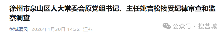 2026年1月30日,江苏徐州政坛再起波澜。据徐州市纪委监委“彭城清风”通报,徐州市泉山区人大常委会原党组书记、主任姚吉松因涉嫌严重违纪违法,正接受纪律审查和监察调查。这一消息如石落静水,激起层层涟漪,不仅揭开一位曾掌舵区域人大工作的领导干部的落马序幕,也再次敲响全面从严治党、深化反腐败斗争的警钟。