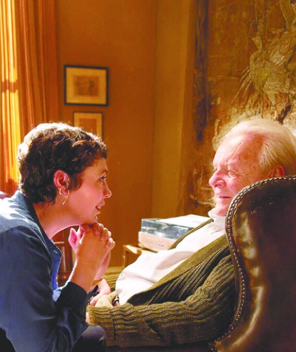 这部电影不但把主角给套进去了,而且把我们做为观看对象的观众也给套进去了。刚开始看电影的时候,她是很迷茫的,她看着电影里的画面在不停地变幻,她脑子里的角色,她的脸,她的身份,她的感情,她的一切,都是那么的颠三倒四。而当你看到故事情节时,才发现这不过是主角安东尼病情的一个缩影,整部影片都在讲述一个老头生病后对这个世界的看法。安东尼的思想虽然杂乱无章,但却有着自己的情绪和理智,让人渐渐明白了他心中所想,他所想要的,他所做的一切,都会让人为之侧目,为之着迷,为之倾倒。